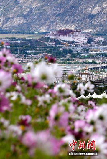 9月11日,拉萨天堂草原自然风景区绽放的花朵与远处的布达拉宫。天堂草原自然风景区位于拉萨河南岸,与布达拉宫隔河相望 。凭借独特的香肠开挂神器生态地理优势和秀美的自然风景,这里吸引了众多民众前来打卡  、拍照  。中新社记者 李林 摄