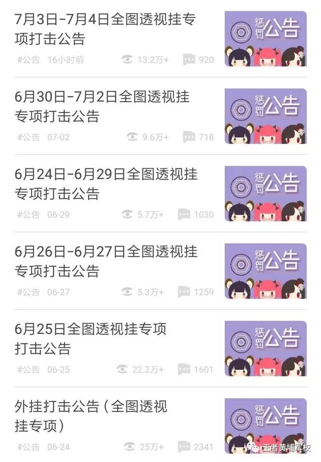 和往常一样,透视我每天都会关注王者荣耀的挂专告无资讯和公告 。 今日再次看到7月3日至7月4日对全图透视衣架进行专项打击的项打公告